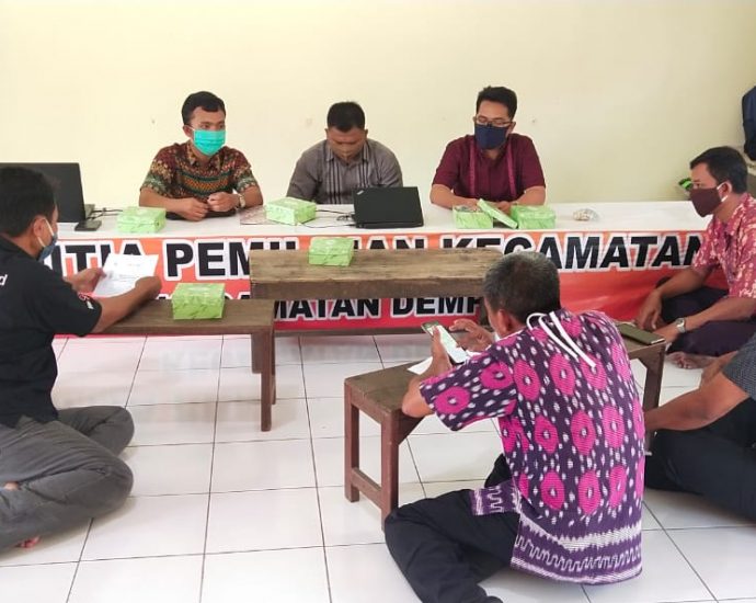 Setelah Tertunda karena Wabah Virus Covid-19 akhirnya Pelaksanaan Pilkada Pemilihan Bupati dan Wakil Bupati akan segera di laksanakan lagi, kali ini PPK Kecamatan Mengadakan Bimtek dengan PPK 16 Desa di Pendopo Kecamatan Dempet. Selasa( 23/6)