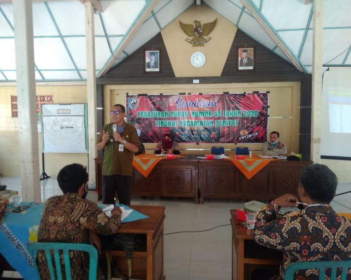 DEMPET – Camat Dempet Mengadakan Sosialisasi Perbub No 45 di Pendopo Kecamatan Kamis (25/6) dengan dihadiri Forkopimcam Dempet, Kepala Puskesmas Dempet, Kepala Desa Se Kecamatan Dempet dan Kepala OPD di Lingkungan Kecamatan Dempet. dalam sambutan/Penyampaian Materi Camat Dempet JOKO WIYONO, SH. MH “dengan adanya Wabah Virus Corona dan Kabupaten DemakContinue Reading