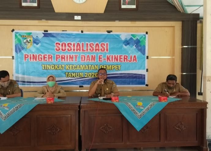 Sosialisasi Pinger Print dan E-kinerja pada ASN dilingkungan Kec. Dempet Kab. Demak di Pendopo Kecamatan Dempet.yang di hadiri dari BKPP Kabid Kepegawaian Ibu Sri Miyarti, SH, MH , Camat Dempet, Karyawan dan Karyawati Kecamatan Dempet serta Sekertaris Desa se Kecamatan Dempet. Ibu Sri Miyarti menyampaikan Pesan ” Bahwa Kita SebagaiContinue Reading