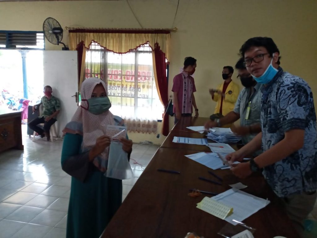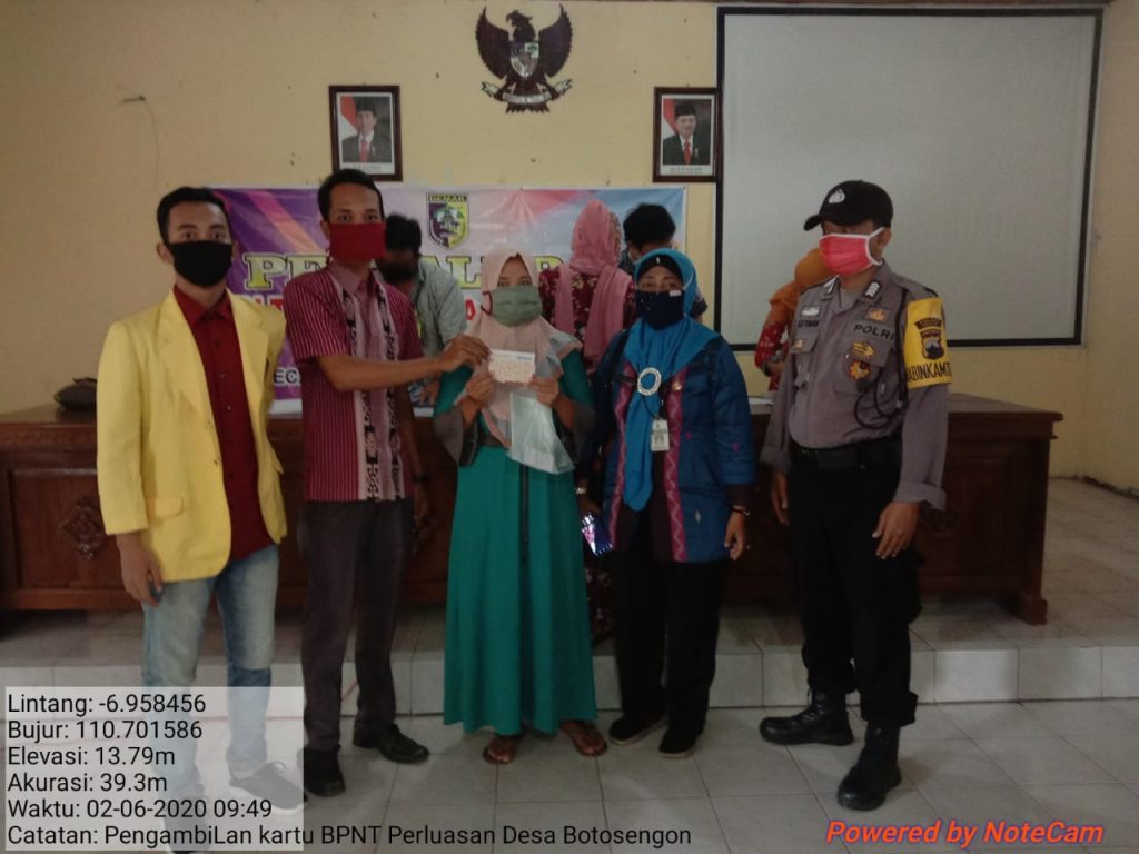 Pemantauan pembagian ATM sembako di balai Desa Botosengon Dempet yang di wakili Kas Kesra Ibu Anis Afiyati 2020-06-03