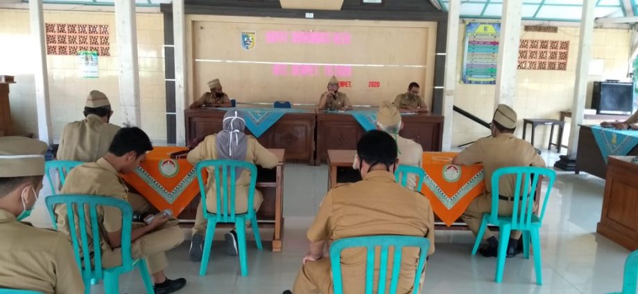 Camat Dempet Bapak Joko Wiyono, SH, MH setelah melaksanakan apel pagi mempimpin langsung Rapat bersama Sekdes 16 Desa dan Kasi di Lingkup Kecamatan Dempet dalam Rapat Tersebut Membahas Penanggulangan Covid 19 dalam Rangka New Normal. Senin (15/6)
