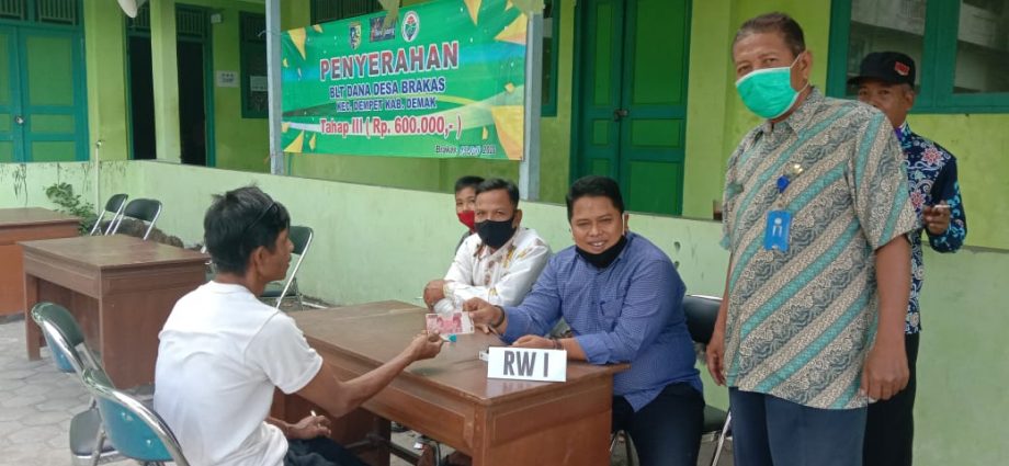 DEMPET – Rabu, 15 Juli 2020 Pembagian BLT DD Serentak di 11 Desa Se Kecamatan Dempet, Kasi Trantib Sutrisno memonitoring Penerimaan Bantuan tersebut di Balai Desa Brakas. Untuk Desa Brakas Sendiri mendapatkan Rp. 85.200.000 untuk  142 orang yang diterima setiap orang sejumlah Rp. 600.000.