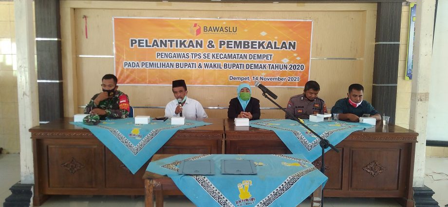 Mendekati Pesta Demokrasi untuk Wilayah Kabupaten Demak Yaitu Pemilihan Bupati dan Wakil Bupati Kabupaten Demak Panwascam Melaksanakan Pelantikan & Pembekalan Pengawas TPS Se Kecamatan Dempet dan karena adanya Pademik Covid 19 ini maka pelaksanaanya dilaksanakan 3 sesi dalam sehari untuk mengurangi jumlah yang terlalu banyak dan tetap mematuhi Protokol Kesehatan. Sabtu (14/11)