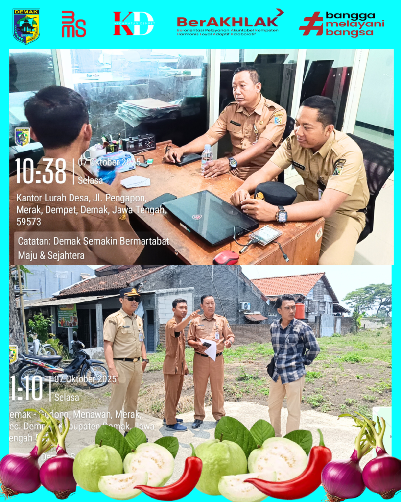 Dempet, 7 Oktober 2025 — Sekretaris Kecamatan Dempet Fahrur, S.Sos., M.M. didampingi Plt. Kasi Pemberdayaan Masyarakat Faidlul Atiq, S.IKom., M.M. melakukan koordinasi dengan Pemerintah Desa Merak terkait rencana pembangunan Gapura Perbatasan Demak–Purwodadi. Kegiatan ini bertujuan untuk memastikan kesiapan lokasi serta kesesuaian rencana pembangunan dengan kondisi lapangan. Sekcam Dempet menyampaikan bahwa pembangunan gapura tersebut menjadi simbol batas wilayah sekaligus memperkuat identitas daerah. “Pembangunan ini diharapkan menjadi wajah baru perbatasan yang merepresentasikan semangat kebersamaan antarwilayah,” ujar Fahrur. Koordinasi berjalan lancar dengan dukungan penuh dari Pemerintah Desa Merak dan masyarakat setempat. F41